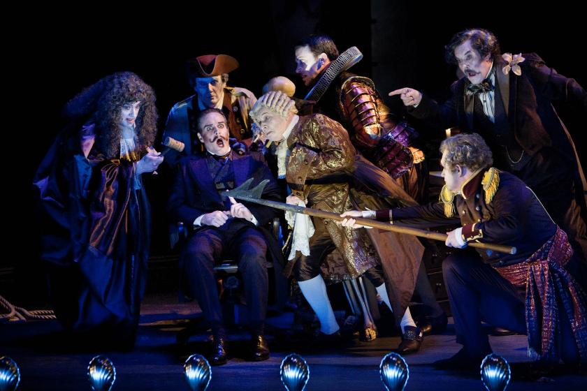 Davies’s shrewdest move is to shift Gilbert’s creaky satire on the excesses of Victorian melodrama forward to the 1920s, a period now more closely associated with the genre – think silent cinema, big moustaches and shiny top hats. There are also several nice nods to 1930s horror films, and a witty sequence of scratchy slides shown just before the curtain rises. These give us the operetta’s back story – that of the cursed line of Murgatroyd baronets, each successive title holder condemned to commit a serious crime each day or face an agonising death. Structurally it’s an unbalanced work – Act I is overlong and too discursive, followed by a tighter second half which concludes nonsensically and a little too abruptly. The plot is full of holes. But it’s still very, very funny – watch this Ruddigore as a series of brilliant set pieces and you’ll leave the theatre immensely satisfied.