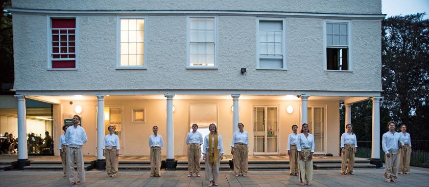 Each live encounter of the new era manages to add some fresh dimension to all that we’ve been deprived of. In this case, for me (though not for Boyd Tonkin reviewing Opera Holland Park's second offering here) it was a chorus of eight female voices, emerging from the depths of Lauderdale House beyond the lawn on which we were so thoughtfully placed in chalked squares. The 12-piece orchestra conducted by Thomas Payne sat just behind an open door, and minutes after a heavy sudden shower and a rainbow above Waterlow Park’s great copper beech, Death, also from within the house, struck up his claim for Sāvitri’s husband Satyavān in the handsome physical and vocal personage of Dan D’Souza (pictured below).