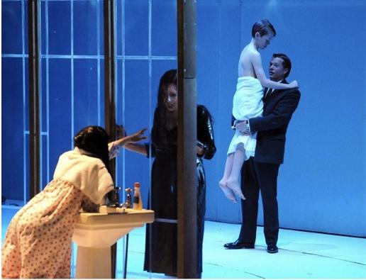 Mrs Grose, the housekeeper, was warmly dramatised and sung by the excellent Susan Bickley, and the two children effectively played very young: Joanna Songi’s watchful, charismatic Flora and the gentle, almost resistless Miles of a 12-year-old Dulwich chorister Thomas Parfitt (pictured below, with Miah Persson), who offers not the smallest sign of being a bad boy.