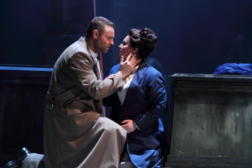 That's surprising from young German director Katharina Thoma, whose convalescent-ward jolt in Strauss’s Ariadne auf Naxos at Glyndebourne I was among the few to admire. Thoma nominally updates Verdi’s 17th century Boston or 18th century Stockholm to Mitteleuropa on the eve of the First World War, but Soutra Gilmour’s stage designs are drab, the few new ideas ineptly executed and the overall feel as conventional as any of Elijah Moshinsky’s mannequin-parade Royal Opera Verdi productions from the 1980s and 1990s. Much is made of what Elisabetta in Verdi's Don Carlo calls "the peace of the tomb": as it's Sarajevo assassination time, everyone is half in love with easeful death, and graveyard statuary comes to life as a zombie movement group. The moments in which the main tomb is wheeled onstage as platform for the principal characters are clumsy, especially so when the conspirators lift Amelia on it while husband Riccardo is shoved symbolically - but at odds with the realistic context - into an open grave.