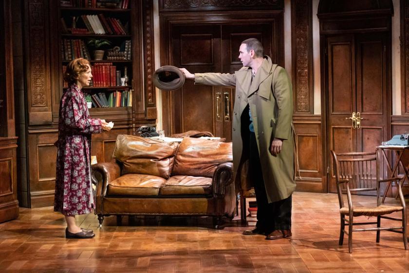 Honeysuckle Weeks and Louis Holland in AccoladeAround the matte Callaghan, though, there's a fine brown wood and old leather Edwardian library and ideal Fair Isle and wool pleating by Julie Godfrey, there's an ensemble particularly strong on the female side, and an intriguing darker psychological edge pointing to the underwritten role of Trenting's 14-year-old son added by his silent drawing of curtains across scenes, or appearing spotlit in snatched dream sequences of unspecifically disturbing sound and light scapes by David Gregory and Nick Richings. The part is effectively played by Louis Holland (pictured above right, with Honeysuckle Weeks), much too old, really, but it's an inverse parallel, if you like, to Trenting's supposed deception into believing a 14-year-old girl was 10 years older.