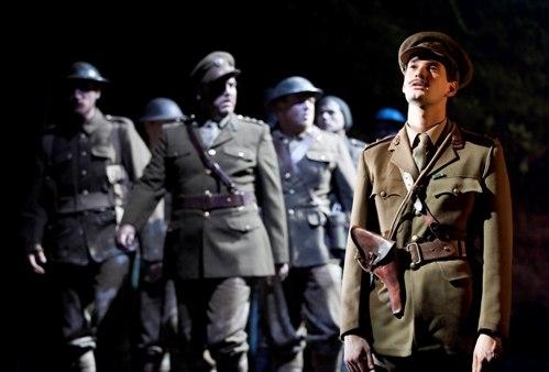 So much for the novel. As to this stage version, writer Rachel Wagstaff and director Trevor Nunn have cut the granddaughter’s narrative, leaving us essentially with the trenches and the story of how love keeps men alive under the most extreme circumstances. Brutally put, that may sound trite. But, and I’m sorry to say it of a production that demands and delivers heroic performances from its acting ensemble, that is precisely the reaction Nunn’s three-hour production had on this spectator.
