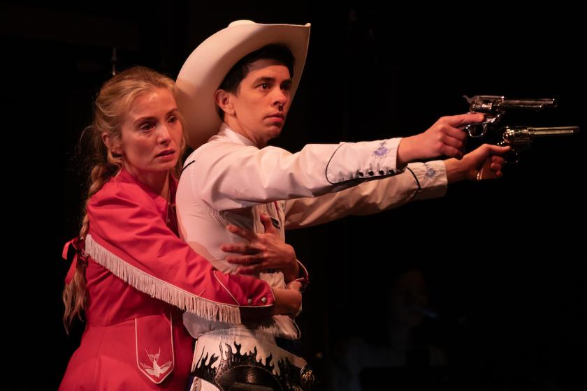 At its best theatre is a seducer. It weaves a magic spell that can persuade you, perhaps against your better judgement, to love a show. To adore a show; to enjoy yourself. This, at least, is my experience of Charlie Josephine’s Cowbois, a queer Western extravaganza which opened at the RSC last year and now arrives, in all its shiny silk-costumed glory, at the Royal Court in London. Normally, I would hate the idea that this venue, which is meant to be our foremost new writing theatre, being just a receiving house for the RSC, but this fabulous romp just blows my doubts clean away.