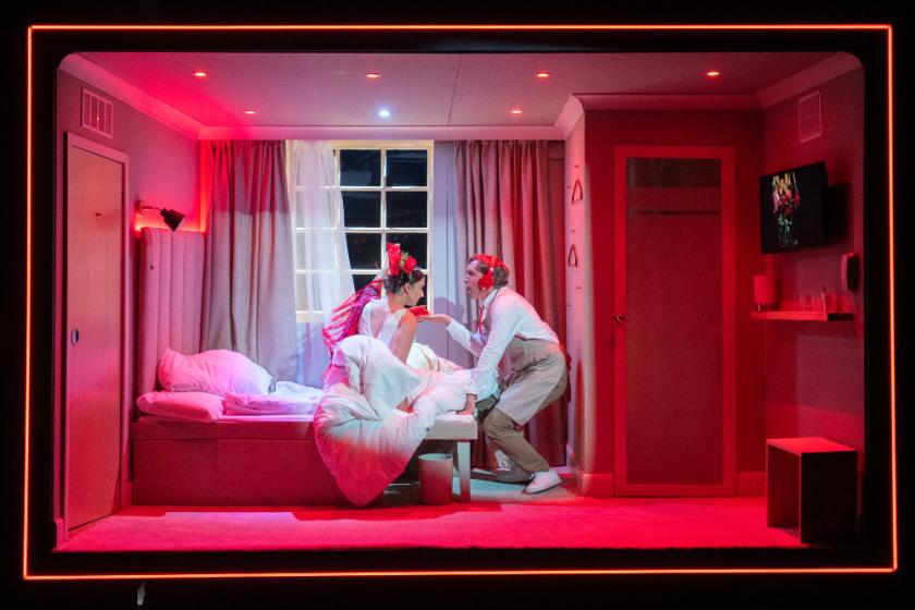 Performances are strong across the board, and appropriately pantomimey. Christina Modestou makes for a nicely officious harridan of a general manager, and Betty Valencia stands out as an over-qualified Colombian micro-biologist thoroughly wasted in this ramshackle set-up. Indeed, the show’s few sly nods towards the poor pay and conditions of hospitality workers hit their marks without distracting from its exuberant comedy. Ana Inés Jabares-Pita has concocted an ingenious, multi-door design that’s put to good use in the show’s farcical run-abouts.