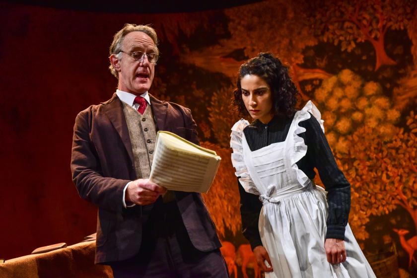 Or did he? Sharp’s legacy has divided academic opinion since the 1980s, attracting complaints that he was a racist (he collected Appalachian songs but none from people of colour), a sexist who ignored the output of certain groups of women, and a bourgeois who turned “folk art” into a whitewashed form that ignored the social deprivation of its performers. Leyshon wisely doesn’t target all of Sharp’s activities; his relationship with a real-life young English singer, Louie Hooper (Mariam Haque), provides her with enough material for a thoughtful play that finds its own way to skewer him.