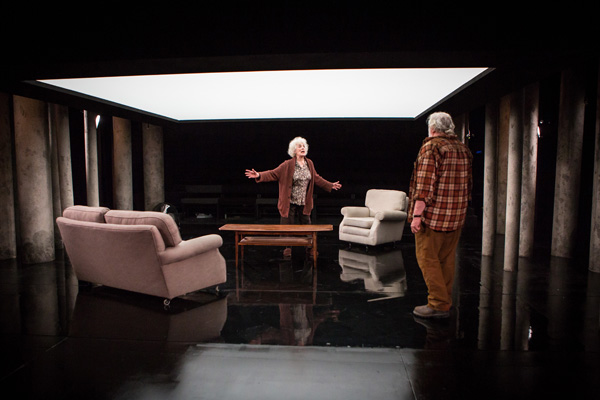 Dedicated to the Child Migrant’s Trust, a body which addresses issues around the deportation of children from Britain, the play is serious, emotionally fraught and very moving, if a touch relentless and unrelenting. But there are some lovely moments: you shouldn’t be ashamed to cry when Mary presents Gerry with a birthday cake. Although Steven Atkinson’s production, co-produced with HighTide, is finely judged as regards the acting, his constant use of very loud music – Handel’s “Sarabande” and Queen’s “Who Wants To Live Forever” – clashes with the more tender aspects of the story. Still, the supporting cast of Sarah Ridgeway (Sally) and Sargon Yelda (Mark) are great, and so is Lily Arnold’s suitably spartan design (pictured above with Bron and Floyd). All in all, this remains a highly relevant play that mixes strong personal emotion with an equally powerful political point. I suspect that Forget Me Not will prove to be hard to forget.