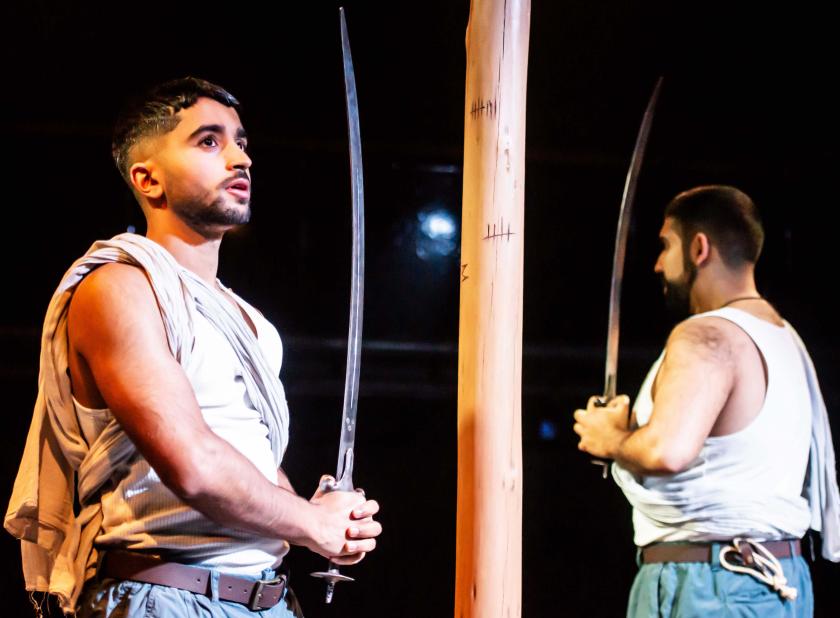 This detail tells you a lot about the world the American playwright Rajiv Joseph has created in Guards at the Taj (2015). It’s a fantasy, semi-surreal, with one foot planted in the quotidian. The terrain is from a distant era that verges on mythology, a time of autocratic emperors with grand projects, though its two protagonists are almost contemporary, like bros, joshing and colloquial.