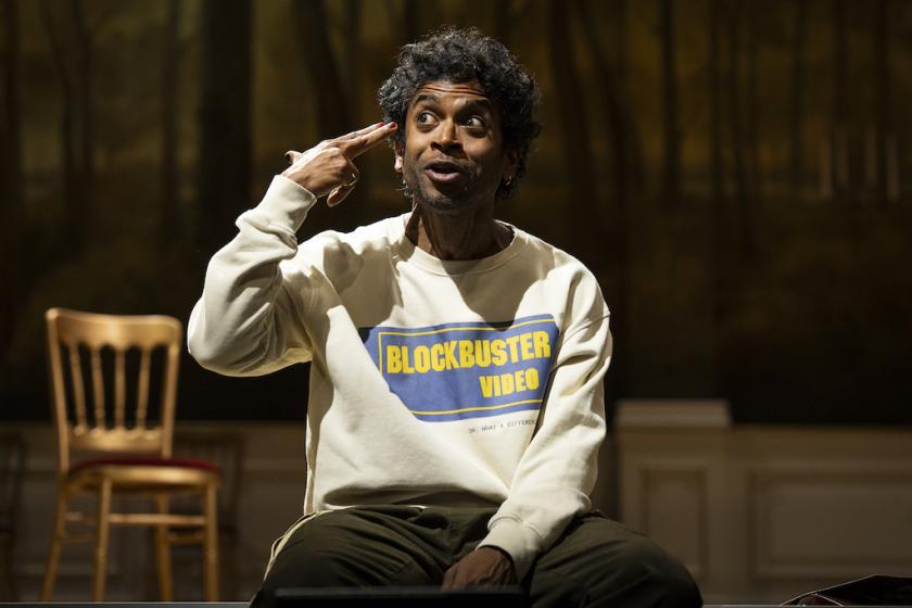 The National’s latest production of Hamlet opens with a bang: a sureness of style, atmosphere and refreshing comedic effect, accompanied by a performer, Hiran Abeyeskera (The Father and the Assassin, Life of Pi), whose presence promises a night of sparky originality.