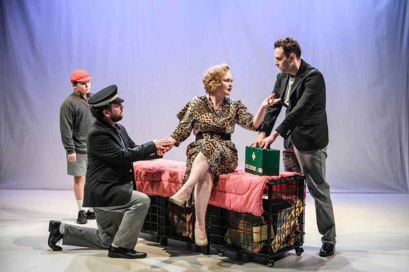Peter Clements, John Wark and Stephen Ventura (with Brodie Edwards and Howard Webb sharing the young Maitland role) play all the other parts, most easily recognisable types, from the officious council inspector seen off with an envelope of cash, to the bobbies hypnotised by Bru’s showmanship when called out to quieten her disco (in Cheam, I remind you) to the teacher waiting for a handshake and expression of gratitude after administering corporal punishment. There’s a dodgy lawyer too, as there usually is.