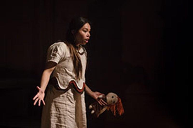 What then happened to the Armenians began to follow a now horribly familiar pattern, beginning with their land and property being seized by the state, continuing with the dismantling of 3,500 years of culture, and culminating with the massacre of entire populations of villages and towns. Those Armenians remaining were forced by the Turkish militia to march without food or water, or shoes, into the desert. It’s to the writer’s (and director Tommo Fowler’s) credit that we submit to listen to these horrors, and worse: the text metes them out via the mouths of the two little girls (Tamar Karabetyan, pictured above with Kate Binchy, and below with Siu-see Hung) and a teenage boy (all played by adults). The childish voices grate somewhat, but as a script device, it works. Children are able to describe atrocities unencumbered by the rage and despair an adult would bring to the telling. It’s also true that the few survivors of the genocide were mostly very young. As an old man (excellent Tom Marshall) recalls bitterly and with typical guilt: “You cannot be a true witness if you survived”.