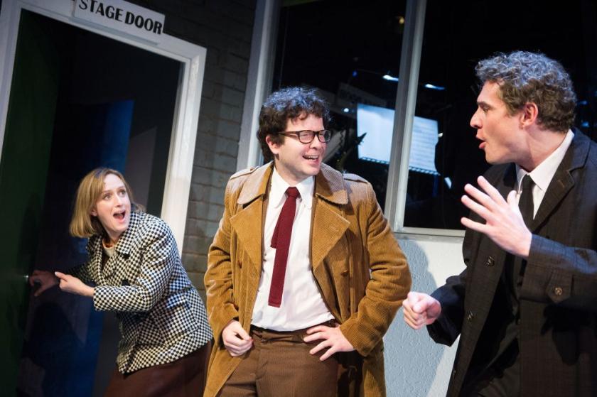 The three principals in Merrily We Roll AlongThe Franklin we see at the start - a beginning, given this show's structure, that is also its ending - is an in-demand Hollywood player with both the industry and all womankind at his feet. Gone missing along the way are his thrusting musical theatre aspirations, his family (he scarcely sees his son), and the bonds of friendship that were forged on the Sputnik-era New York rooftop where the narrative eventually lands, the shimmering buoyancy of the show's closing number, "Our Time", amplified by our awareness of the betrayals, heartache, and more that would afflict these innocents inhabiting that too-brief Elysium before life's abrasions come to call. (That rude awakening is itself a Sondheim constant, and one could imagine all three of this show's principals - pictured above - revisiting it someday in the same composer's Follies.)