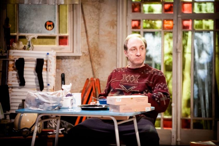On that very front, Tommy when first seen is offering shelter to the bloodied Aimee (Caoilfhionn Dunne), a young woman whom he rescues from an assault and brings home to a debris-filled room that, it becomes clear, offers refuge numerous times over. Also seeking succour there at regular intervals are Doc (Michael McElhatton, imnmediately winning), the cosmos-minded colleague in Tommy's removals business, and Maurice (the invaluable Jim Norton, winner of both a Tony and an Olivier for McPherson's The Seafarer), Tommy's uncle and patron of sorts, a widower who's not above drunken mid-afternoon ramblings and who perks up most at the prospect of instant coffee. (Maurice's level of awareness is elsewhere tested when he clocks a sack of turnips without paying apparent heed to the dead body lying by its side.)