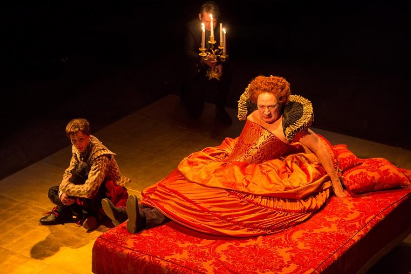 Ruhl’s answer is to focus on the central character and, initially, on his teenage Russian love Sasha, but also to introduce three male “choruses” in Richard Hope, Thomas Arnold and Tunji Kasim, each of whom fills in the blanks and plays various characters from duchesses to maids. And they play it very much for laughs. Hope’s Queen Elizabeth and Arnold’s Archduchess Harriet resemble the Ugly Sisters. It’s all great fun with elements of Blackadder humour.