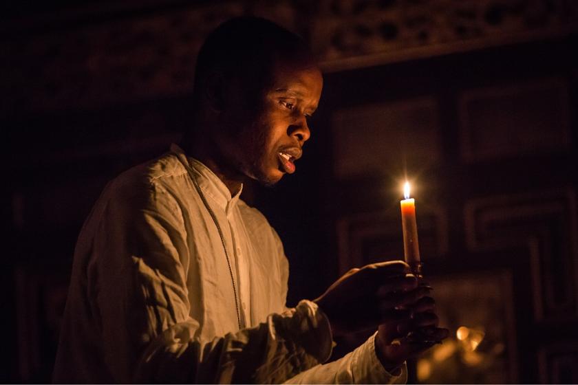 None of this is the fault of the admirable Othello, Kurt Egyiawan. Noble and low-voiced in fine speech for the opening Venice act, he also makes us aware of a man on edge and alert to slights about his skin, which seem commonplace even though he's been made General. That partly prepares us for the turn to jealousy, but it's been a stretch for every other Othello I've seen, due to Shakespeare's compression of the way Iago's poison begins to work, and Egyiawan is no exception. He deals chillingly with deadly quiet and one frightening outburst in Othello's first questioning of Desdemona over the handkerchief, and he never rants.