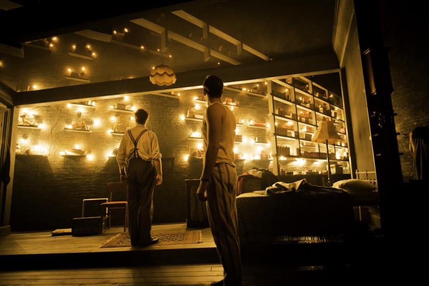A Donnar first-timer, Turner starts the second act with the entry from the rear of the stalls of Gar’s loutish mates, the lads swaggering toward the stage like some Irish backwater equivalent of the Oxford swells that populate the director's rightly lauded work on Posh. And the design is exceptionally beautiful, even by the lofty standards at this address. Rob Howell’s geometric set, all sharp angles with shelves of objects and bric-a-brac climbing the theatre’s defining back wall, neatly delineates Gar’s increasingly oppressive daily routine, and it is ravishingly lit by Tim Lutkin to illustrate both the theatricality, and the terror, of Gar’s life on the run: a man who in forsaking one home for another must face up to the fact that he can never escape himself.