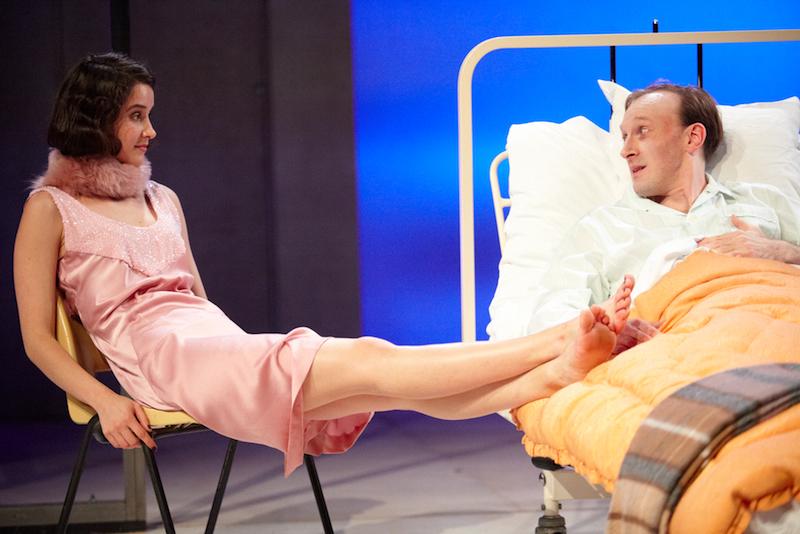 These themes ought to be painful, but they’re undercut by Matthew Dunster's indecisive production and casting. Dunster fails to deal boldly with the nettle, that this is evidently intended by Maugham as a solemn contemplation of themes too often brushed away casually (naturalism was not what he wanted - he considered his great rival Noel Coward’s repartee beyond the pale). The effect of the ETT staging is the contrary. The clothes are Twenties-derived, the minimalist, highly lit white hospital suite recalls the clean new lines of architecture, if not very stylishly; but that much-needed period anchoring is steered away by modern music and sounds, a country 'n' western song on the radio, electronic rumbles seeping in for impending moments of doomy revelation in the plot.