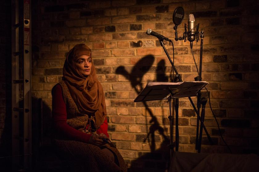 In this trilogy of shorts, Adshead celebrates these women in a variety of different texts, many of which are refreshingly unnaturalistic. The first playlet, written with Lebanese-Syrian storyteller Alia Alzougbi, has a great rubric: “in these turbulent times so-called artists have crawled out from under their stones.” Alzougbi, playing a character called Alia, performs a couple of neat anecdotes critical of the regime with small puppets. She is arrested, thrown in prison and beaten. Despite her injuries, she continues to use a finger to perform her puppetry.