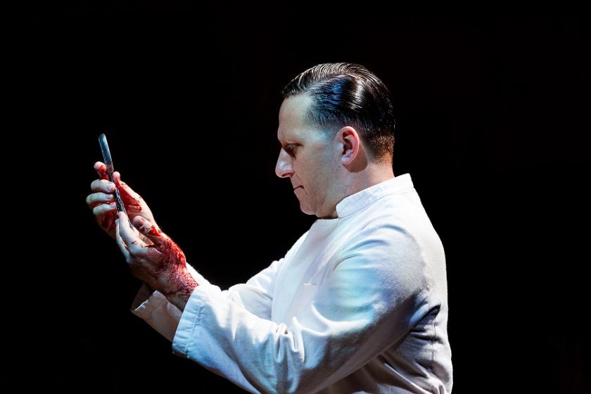 We still get the bloodletting story, the self-justified psychopathic murders, the juicy meat pies for unwitting cannibals and, of course, the score and lyrics full of invention and wit, heartbreak and dark humour. Also, set in our own times, the everyday throat-slitting seems extra-chilling. This was the time when Peter Sutcliffe, the Yorkshire Ripper, was gruesomely active not far from this very theatre.