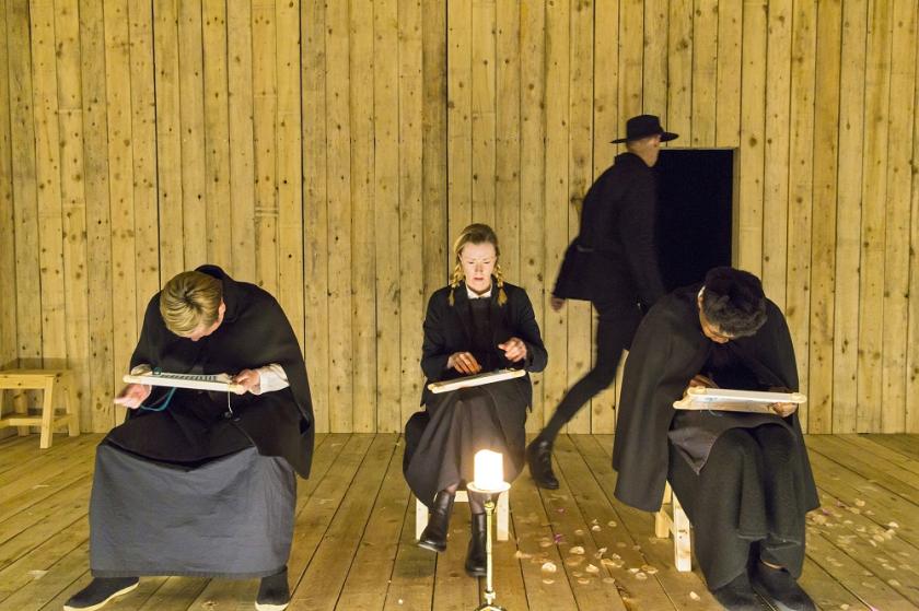 In The Sewing Group I wanted to write about the moment before change arrived. No watches, no clocks, no electricity. What on earth were people doing? As it turns out some women were sewing. Some women embroidered onto lace for money. This is before the sewing machine, before Ned Ludd and his Ludditte followers rebelled against the mechanisation of weaving. This is just sewing. And then I wondered what it would feel like to watch women sew on stage. Would it be really boring? Would it be a kind of mind rot? Or would it do something unknowable? Would it invite and compel the audience to a place of focus where new information starts to show up; breath, body shape, the pop of the needle coming through the fabric, the strain of the work, the ache for the light of the candle, the shared oxygen, the length of the thread, the rigour of the pattern, the world starts to warp and shift. We’re looking at sewing, yes, but what else do we see?