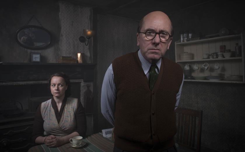 As if to eclipse all thoughts of Fleischer’s starkly beautiful film, Rillington Place – apart from a moment when the whole screen flashes blood-red in the first minute – is shot in 50 shades of grey and brown. The designers have had a field day creating a palette of dinge deluxe. The odd couple who inhabit it are dullards, too: repressed, costive, laconic. Newly reunited after a long separation – “nine years without a word,” sighs Samantha Morton’s Mrs Christie – they don’t even sit on the sofa together.