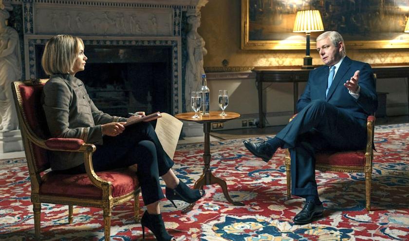 Wilson apparently studied Maitlis in all aspects, from her messy handbag to her on-screen tactics, and because it’s Wilson under the blonde wig, Maitlis emerges with some of the actress’s vitality and intelligence. She also emerges with an almost baritone voice that sounds like a recording slowed down by one rpm. Even so, Wilson manages to project the loose-cannon side of Maitlis, as well as her driven professionalism. One of the funniest scenes is a silent one in which the running-late Maitlis has to rein herself in behind the slowly plodding Palace official escorting her to the set of her interview. Wilson and Lydia Leonard, playing Newsnight editor Esme Wren, also have some enjoyably snappy exchanges, two women battling for recognition.