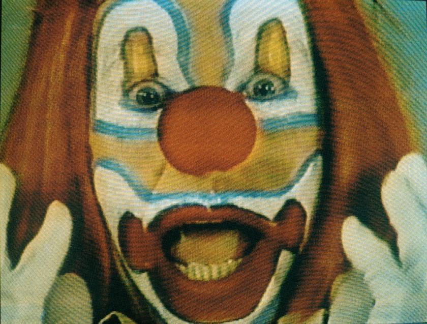 Some of the early films are on view in the second room (pictured below: Walking in an Exaggerated Manner Around the Perimeter of a Square, 1967-8). We see him exaggeratedly swaying his hips while walking round a square marked on the floor, or maintaining a series of awkward poses between floor and wall. Kneading the flesh of his neck and face as though it were clay, he also creates deadpan grimaces unconnected with an emotion. review Bruce Nauman, Tate Modern Communicating emotion or, rather, the stifling of expression is explored in an early sculpture, in which a tape-recorded scream is buried in a block of concrete, and in the film series Clown Torture, 1987 (main picture). His face painted in patterns so exaggerated they resemble an expressionist painting, a clown tries with increasing desperation to communicate genuine feeling. Since his appearance mitigates against being taken seriously, he becomes ever more hysterical as he tries to convince us that “No” really does mean “No”. In his role as an entertainer, the clown is doomed to repeat a children’s joke: “Pete and Repeat were sitting on a fence. Pete fell off; who’s left? Repeat"… etc etc ad nauseam. Watching him is as excruciating as it is funny. Although not explicitly political, these films have serious implications, politically.
