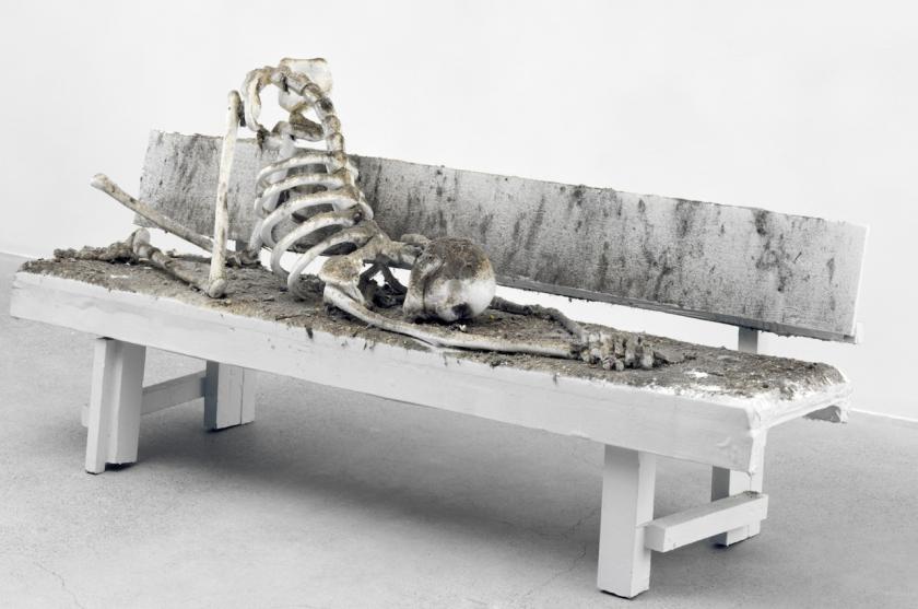 Then there’s Mark Wallinger’s Christ, in Ecce Homo, bought down to earth, or at least down from his column, where we last saw him perched on the edge of Trafalgar Square’s Fourth Plinth in 1999. There he looked small and vulnerable. Here Christ looks robust and with a surprisingly wide chest. Nearby is Urs Fischer’s Skinny Sunrise (main picture), a skeleton stretched face down on a park bench with its arse in the air, as if doing its yogic exercises for health and longevity.