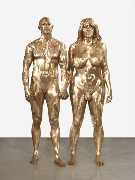 The Ecstatic Autogenesis of Pamela is a bronze of the television actress, silicone to the fore as she thrusts her breasts skywards. This is, perhaps, the acceptable face of cosmetic surgery, a woman who owes her career to artificial enhancement, but whose interventions now seem (at least in Hollywood) normative. One stage further down the road are two marble heads of Michael Jackson, Man in the Mirror and Man in the Mirror (Monochrome Reversal), one a white marble face, one black (pictured above right).