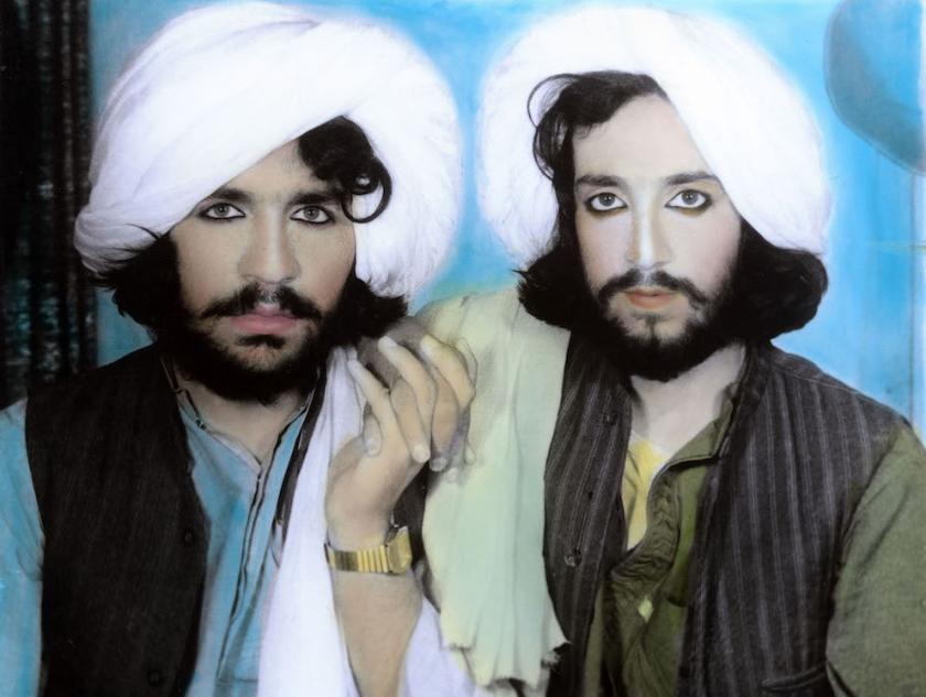 The show is divided into sections and under the rubric Disrupting the Archetypes, tough guys reveal their soft side. The Taliban may be portrayed in the West as ruthless fanatics, but here they are, eyes rimmed with kohl, holding hands like young lovers (main picture) or posing with bouquets of flowers before colourful backdrops. These astonishing shots were discovered in 2002, in a photography studio in Kandahar, by Magnum photographer Thomas Dworzak, when on assignment in Afghanistan.