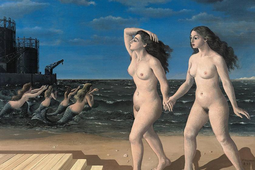 It is always either night or noon. The interiors are neo-classical apartments that belong to the European bourgeoisie from before the First World War, and they come with a full collection of Freudian indicators: locked doors, open windows, floors stripped down to the boards. The landscapes are either classical or barren and they have been emptied of all but a few people. The figures rarely interact with each other. No one speaks. The women always outnumber the men. They are thoughtful and distant, isolated but content and always utterly unapproachable. On the rare occasions they are clothed, it seems to be in the dress of the years before 1914: of Delvaux’s childhood.