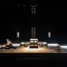 Annabel Arden’s staging revels in the physical constraints, the plotting and characterisation much clearer as a result. Alastair Miles’s Timur is a shabby, cowed wretch, his blindness implied with a mere smidgeon of face paint. Sunyoung Seo’s downcast, plainly dressed Liù stands out among the supporting cast, able to reduce her voice to a whisper while losing none of its colour. Rafael Rojas as Calaf is an impetuous, headstrong joy, his high register unchallenged by Puccini's louder tuttis. Set and costume designer Joanna Parker’s sole prop is a giant wobbly throne which begins to teeter precariously. Underneath which we catch a fleeting glimpse of Orla Boylan’s Turandot (pictured right) early on, a terrifying sight in metallic grey and black feathers. Her voice is suitably commanding and steely, only gradually revealing its warmth in the last act. And dressing Gavan Ring, Joseph Shovelton and Nicholas Watts’s Ping, Pang and Pong (below, left) as white faced circus clowns reminds us of their commedia dell'arte roots, the trio making brilliant use of suitcases, surgical instruments and a human skeleton.