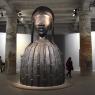 Part two of The Milk of Dreams, the central International Exhibition at the 2022 Venice Biennale, housed in the Arsenale shipyard, starts with the kind of massive, grandstanding gesture that’s necessary in a venue of this scale: a colossal bronze bust of a Black woman by American artist Simone Leigh. The serene head with its eyes smoothed into blank sightlessness extends up into the ancient rafters, while the upper body is reduced to a ribbed dome-like form reminiscent of traditional African architecture.