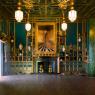 It looks as if vandals have ransacked Whistler's Peacock Room. The famous interior was commissioned in the 1870s by shipping magnate, Frederick Richard Leyland to show off his collection of fine porcelain. The specially designed shelves have been broken and their contents smashed; shards of pottery lie strewn across the floor.