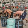 Mike Nelson has turned the Duveen Galleries into a museum commemorating Britain’s industrial past (pictured below right). Scruffy workbenches, dilapidated metal cabinets and stacks of old drawers are pressed into service as plinths for the display of heavy duty machines. Rusting engines, enormous drills, knitting machines, crane buckets, a concrete mixer, a paint sprayer and various other unnameable objects are thereby elevated to the status of sculptures.