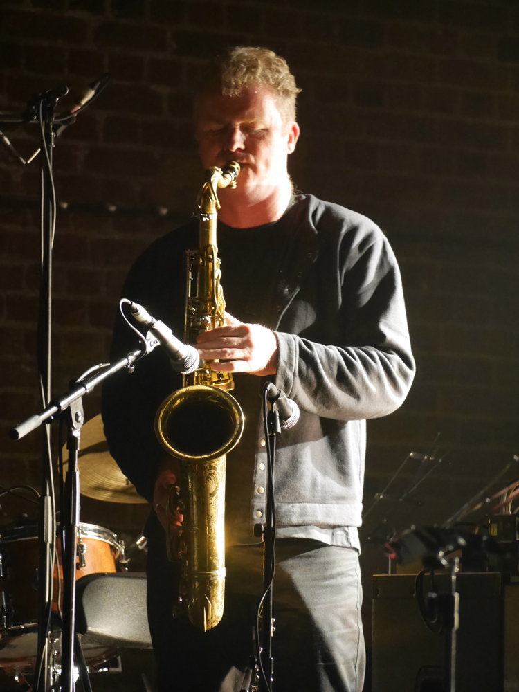 Food, a duo of saxophonist Iain Ballamy and drummer Thomas Strønen, came next. Their improvised, trance-like exploration of rhythm and texture was given theatrical heft by the setting, the two men isolated in space, like ceremonial priests in a maze of lights and smoke. Both players have a desk of loops and effects as well as acoustic instruments; both experiment with the softest acoustic sound, as well as brain-curdling rhythmic loops. Now signed to ECM, Ballamy’s acoustic playing has moments of likeness to his ECM colleague Jan Garbarek, though that smoothness is not the primary aesthetic, and is quickly obliterated by one of Strønen’s depth charges.