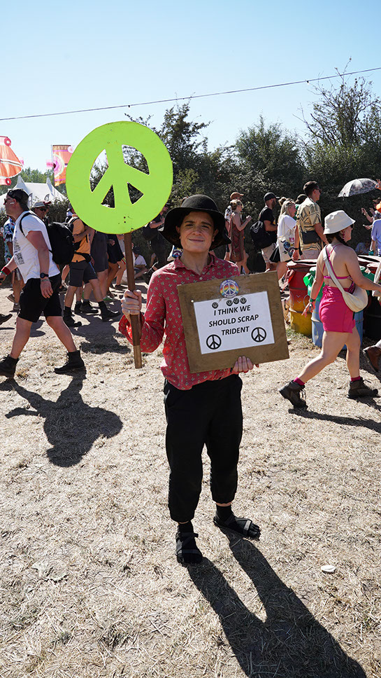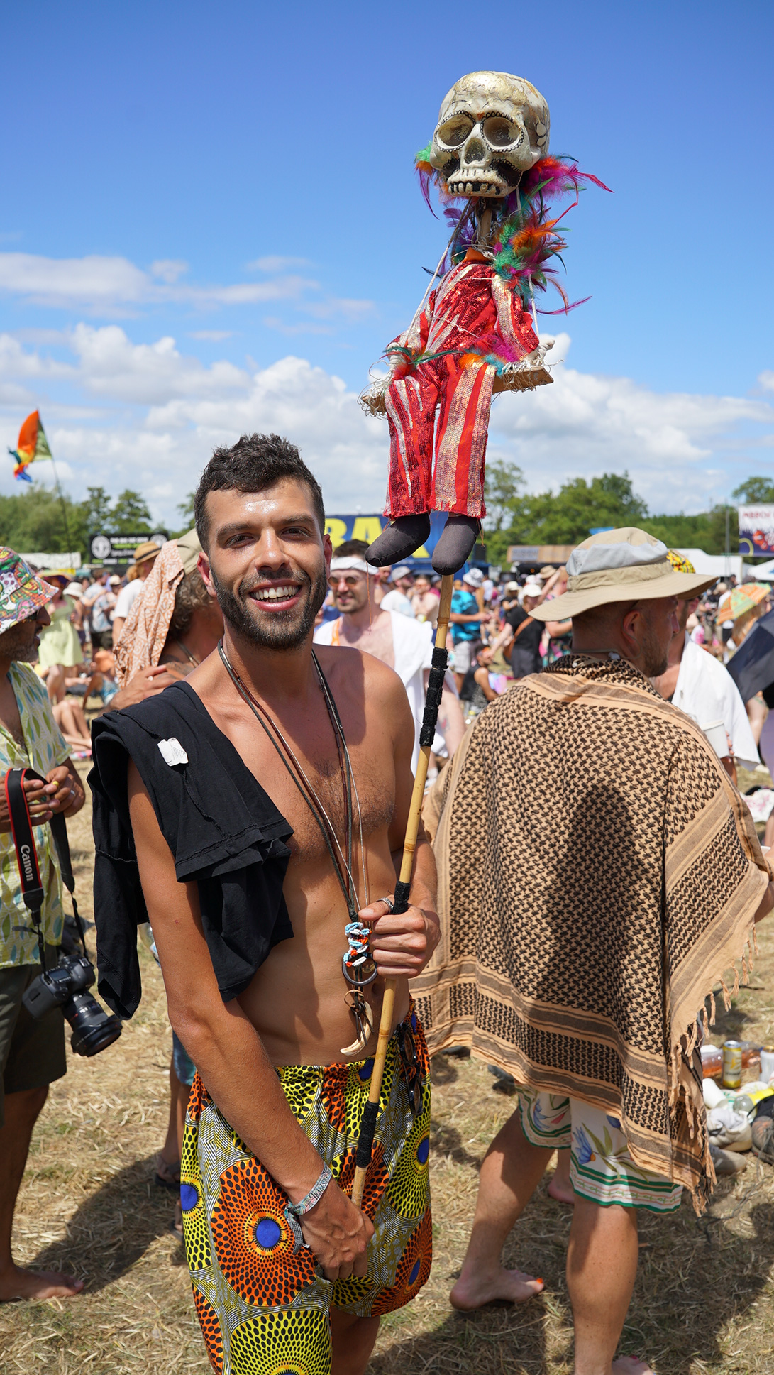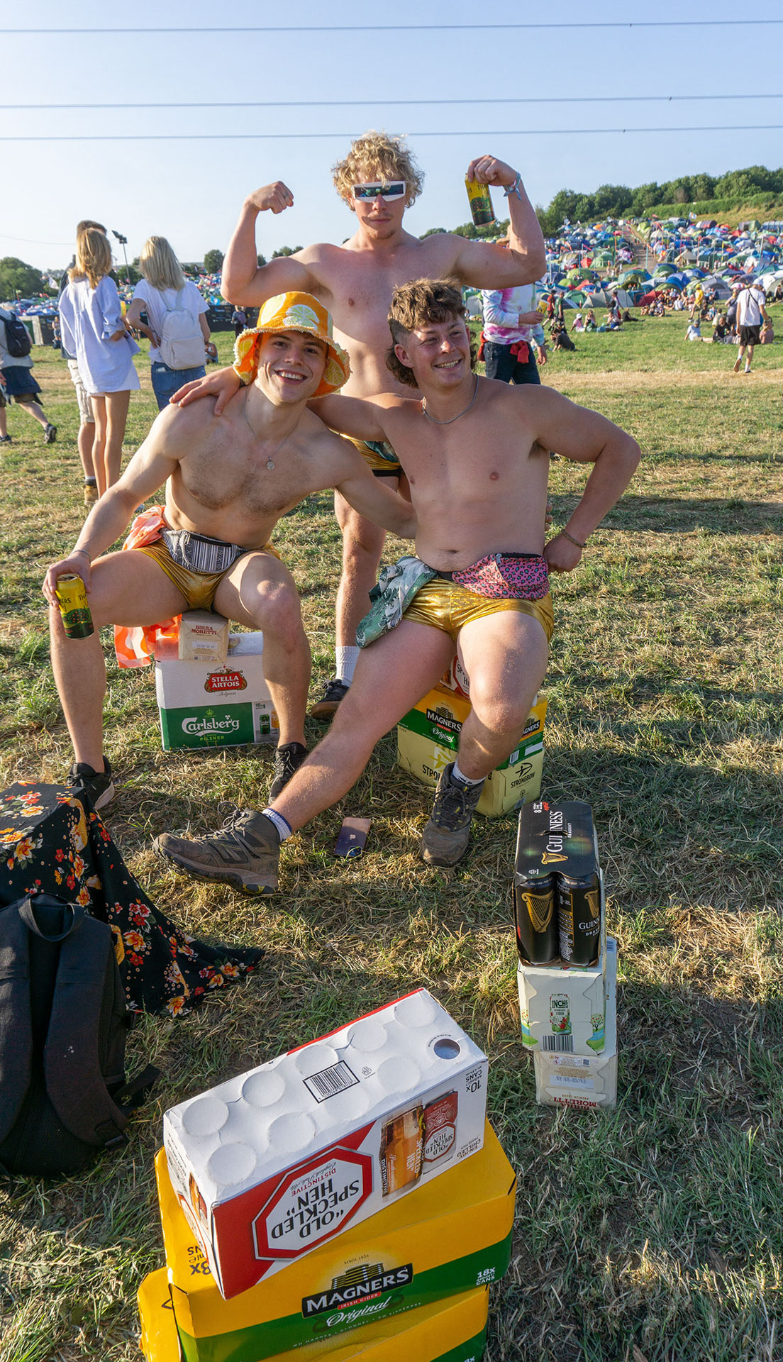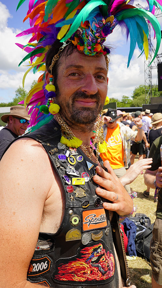 But we must move. Time just goes. While we’ve been chatting and drinking and chewing Liberty Crumble, Steflon Don, Carly Rae Jepson, Lightning Seeds, Los Bitchos, Billy Nomates, FLO, Gok Wan, and hundreds more have been playing. Not that I especially want to see those. Point is, it’s too easy to relax, high and happy. If you’re watching on telly, it’s the press of a button. Here it’s a 15-20 minute walk to the Pyramid, half an hour to West Holts, and more to further stages. Stomping is the game. Also keeps the metabolism fast, stops chemical pooling, detracts from hangovers and comedowns.