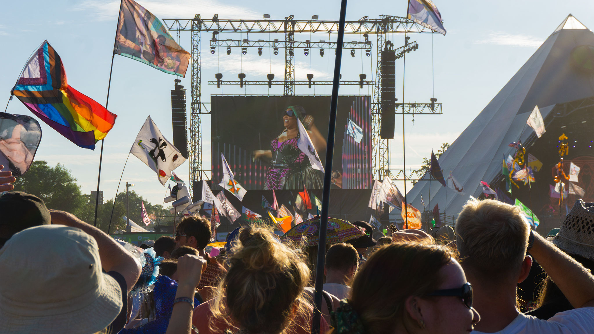 The set dips in the middle – or maybe I do – but revies with a Pyramid field disco party of Kylie/Diana Ross proportions for a cover of “I’m Every Woman”, and the closing one-two punch of “Good as Hell” and “About Damn Time”, the latter featuring Lizzo’s flute interplay with two other pink-clad flautists called The Sashays.