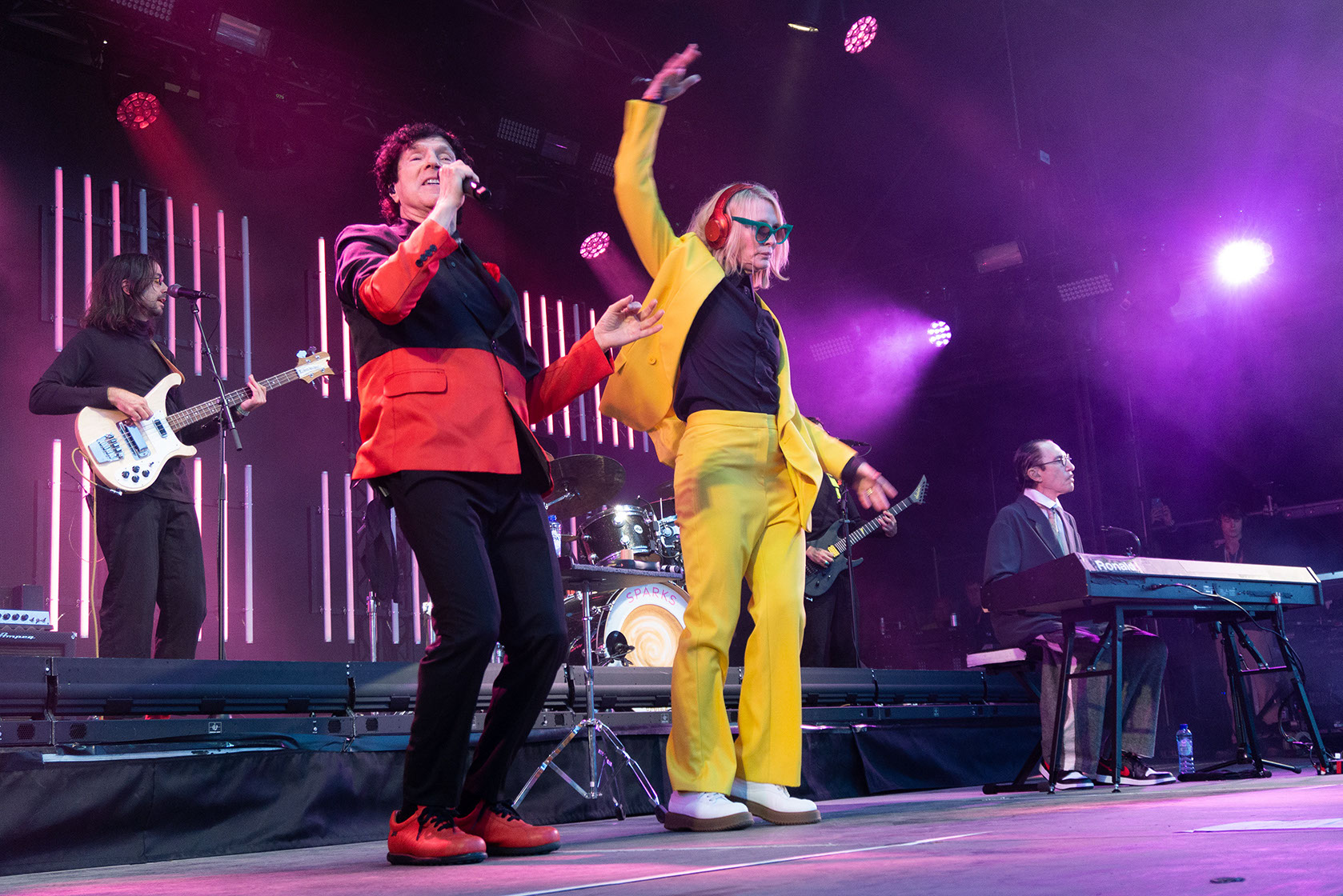 Sparks arrive and play a song I don’t know, appropriately called “So May We Start”, which turns out to be from their 2021 feature film Annette. Directed by Leos Carax and starring Adam Driver and Marion Cotillard, Peter Bradshaw described it in The Guardian as “a declamatory and crazy spectacle, teetering over the cliff edge of its own nervous breakdown… a swoon of anxiety and rapture”. So’s the set we now witness, an operatic insanity that brooks no argument and drags everyone in.