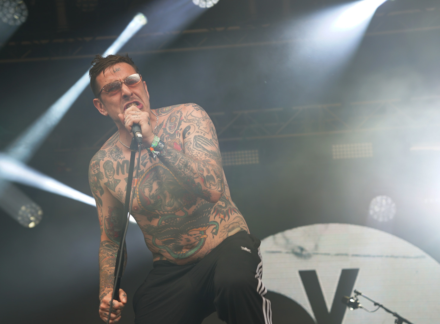 We’re up front at the Other Stage, buzz on at 1.00 in the afternoon. It’s hot but with passing clouds, nowhere near as viciously sweltering as it will be tomorrow. Flags flutter all around; “Jason Steele For England”, “The Pirates”, “Shit Indie Disco”, “This is our Fuppin’ Spot”, “Cattle in the Wind”. The Hives arrive like a Swedish thunderbolt. Dressed in black’n’white suits aptly embossed with lightning, they nail one of the sets of the weekend. 45 minutes of adrenalin garage rock, forensically tight-tight-tight, spiked with sheer cheek from frontman Pelle Almqvist.