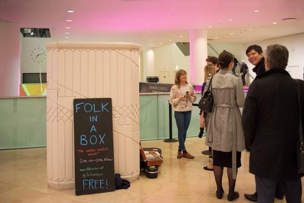 A comprehensive programme of free foyer gigs created a festive atmosphere between ticketed events. Some foyer performers, like winsome Italian accordionist Maurizio Minardi (pictured right) who filled the building with feel-good folk-jazz, captured an audience larger than any of the ticketed events. Young festival-goers were inspired by a wide range of art and music workshops, while their maturer chaperones could escape into a wine or beer tasting. Meanwhile, anyone curious about folk (but embarrassed to show a public interest?) could visit the folk-in-a-box, a private booth - Tardis-cum-confessional - offering one-to-one folk performance.