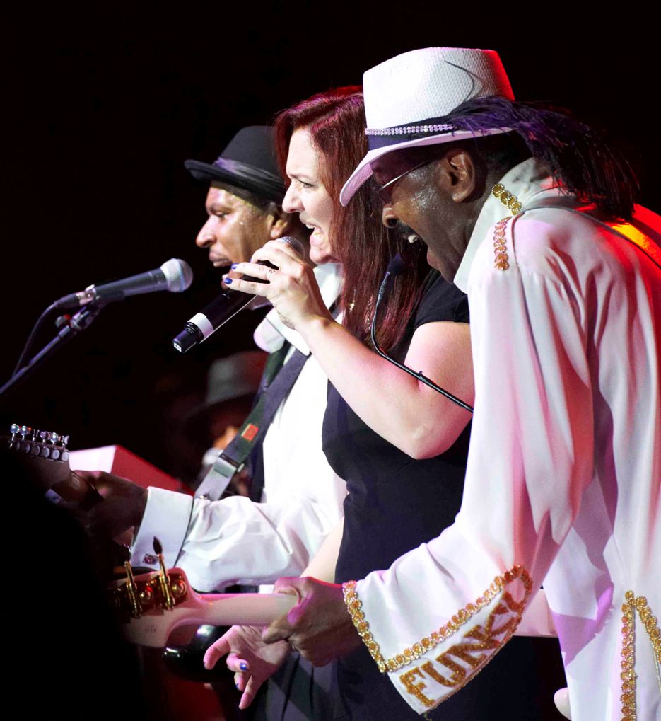 Graham Central Station are, these days, four black musicians - drums, guitar, keyboards, synthesised horns (a mistake) - and a white singer who compliments Graham’s vocals in the way male and female voices meshed in The Family Stone and Graham Central Station. Larry wears a blinding white suit and hat and leads from the front. Early numbers find not just Larry’s look but his sound locked in the early 1980s – loud drums, huge bass lines, squalls of rock guitar (admittedly, he helped create this sound) as they work through new and old Graham tunes. Versions of Ann Peebles’ "I Can’t Stand the Rain" and Stevie Wonder’s "Higher Ground" don’t add to the originals and then Larry goes into a riff on a band who came from London town and how he wants to pay tribute to them and launches into Maroon 5’s "Moves Like Jagger". You can feel the audience – middle-aged men and women who loved funk as teens when it was the fresh dance sound – collectively gasp in disappointment.