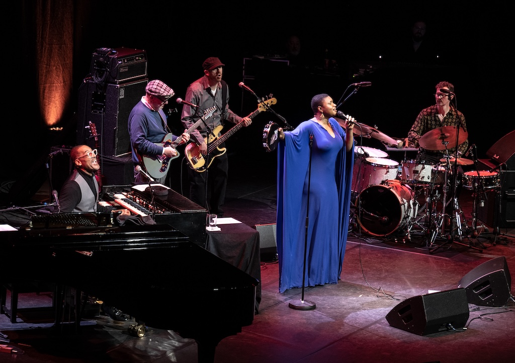 No diva histrionics for Lizz Wright. She knows better: less is more. And while she’s most definitely the focus of attention, her relationship with the musicians is essential to the bewitching mix. She has a refined ear for the band’s musical eloquence, one that matches the perfectly nuanced and understated quality of her singing. Their different personalities mirror the facets of her own. They are visibly listening to each other, and to Lizz, in a kind of sync that possesses the natural quality of simple breathing. Adam Levy on guitars never places a chord or a note wrong. He can do gentleness, with more space than playing, or fury when he slices chords that drive the music forward. Kenny Banks on piano and organ, a regular collaborator, can support with exquisite jazzy instincts, and fill in with gospel-tinged chords on the organ.