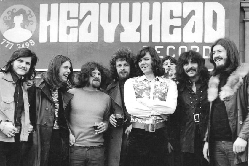 The picture seen above doesn’t have quite the same resonance as Art Kane’s 1958 shot A Great Day in Harlem which brought 57 American jazz musicians in front of his lens, but it is nonetheless significant. Here, in 1971, is an evocative, unique record of a moment in West Midlands music history. The shot was taken at the opening of Heavy Head Records, a Sparkhill record shop run by Move/Electric Light Orchestra drummer Bev Bevan. The shop was formerly a toy store run by his mother.