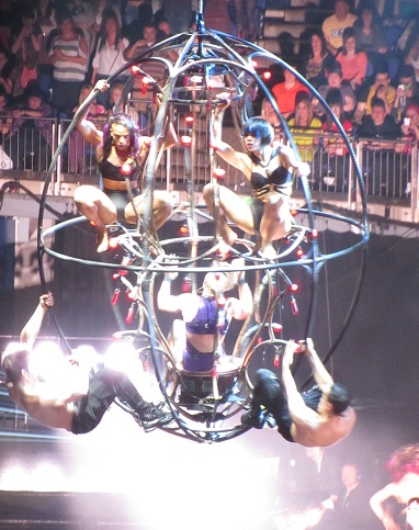 The high-octane pace lasted all night long. At the end she was flying again – this time suspended on wires and being fired from one end of the arena to the other. In the intervening two hours, the 33-year old mother proved herself possibly the most exhilarating, dizzying arena act around.