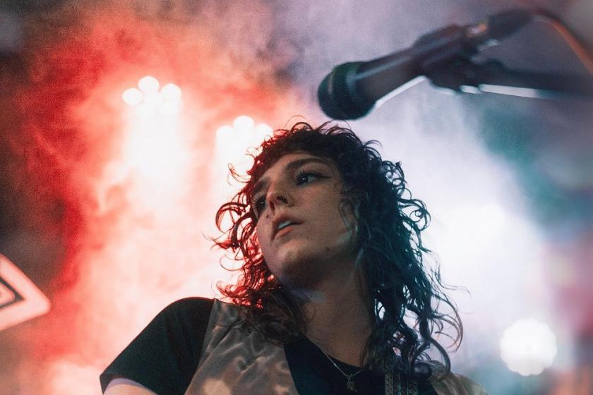 That much is immediately telegraphed by the grouping gathered on stage. The core members of the Brighton-based band are Louis Bradshaw (drums), Tom Coyne (lead guitar) and Chloe Spence (guitar, vocals). Here, the line-up swells to a five-piece with the addition of Callum McMurchie (backing vocals, guitar, keyboards, synthesiser) and Matthew Todd (bass guitar). Even though Todd is also on the front line, Coyne and Spence draw most attention. The latter as she sings all the songs, the former as his guitar is foregrounded, often taking flight. There’s the odd concise drum solo and the bass guitar persistently pulsates, while McMurchie fills in and supplements. But ears and eyes are drawn to Coyne and Spence.