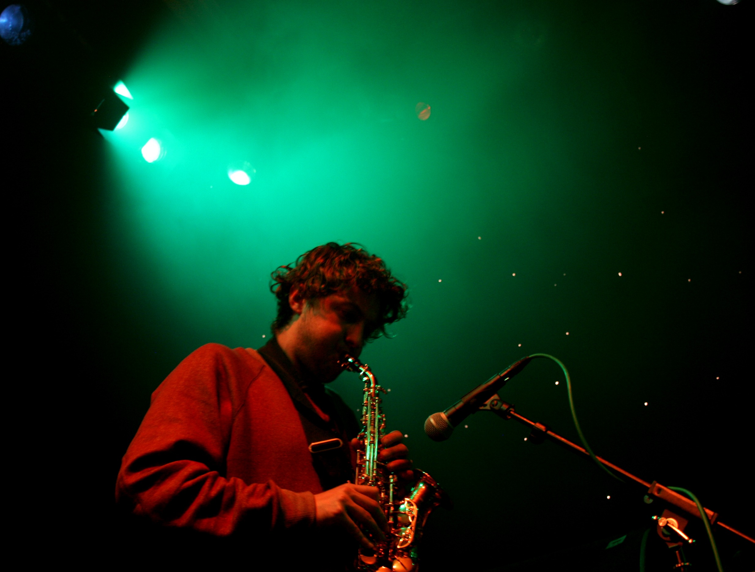 Portico Quartet are an unassuming-looking bunch. They arrive on stage and ensconce themselves at their stations. Only saxophonist Jack Wylie (pictured left) appears to have any freedom of movement - his bandmates are as surrounded by banks of technology as starship fighters in a low-budget Star Wars rip-off. Sadly they don’t look like starfighters; they look like geography students on dress-down Wednesday. Which is a shame because, with a performance so studied yet entertaining, they could do with a bit of visual pizzazz as counterpoint, something to say, as the music often does, that, hey, as well as being complex and sonically intriguing this is fun. They do, however, have flavoursome mood lighting and a black backdrop pinpricked with white lights, like a cabaret night sky.