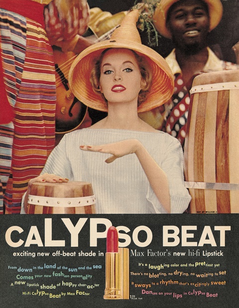 Calypso Craze_Ad Max FactorOne potential nail in the coffin comes on the final disc of the box, a DVD which, along with four short musical films, includes the 1957 feature film Calypso Joe. Although it features lively contributions by The Duke of Iron and Lord Flea & his Calypsonians, it is a terrible, paper-thin, almost-unwatchable cash-in. The trend had been wrung dry. And unlike rock ’n’ roll, no kids were taking up the baton and pushing forward with their own take on calypso. (Pictured left: cosmetics company Max Factor gets with the calypso trend