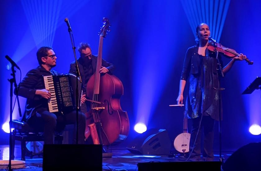 There were virtuoso performances all round, Giddens' carefully calibrated vocals negotiating some tricky intervals and microtones, not least on “Black Swan” from Menotti’s two-act opera The Medium. She’s not too shabby on fiddle and banjo, either. Turrisi was charming, wittily erudite, his enthusiasm infectious. In addition to so much exotic percussion, he also played piano accordion and, in the Menotti, reached inside the Steinway to pluck and strum its strings. Sypher’s bass contributions, sometimes bowed and sometimes plucked, featured perpetuum mobile-type figures and drones.