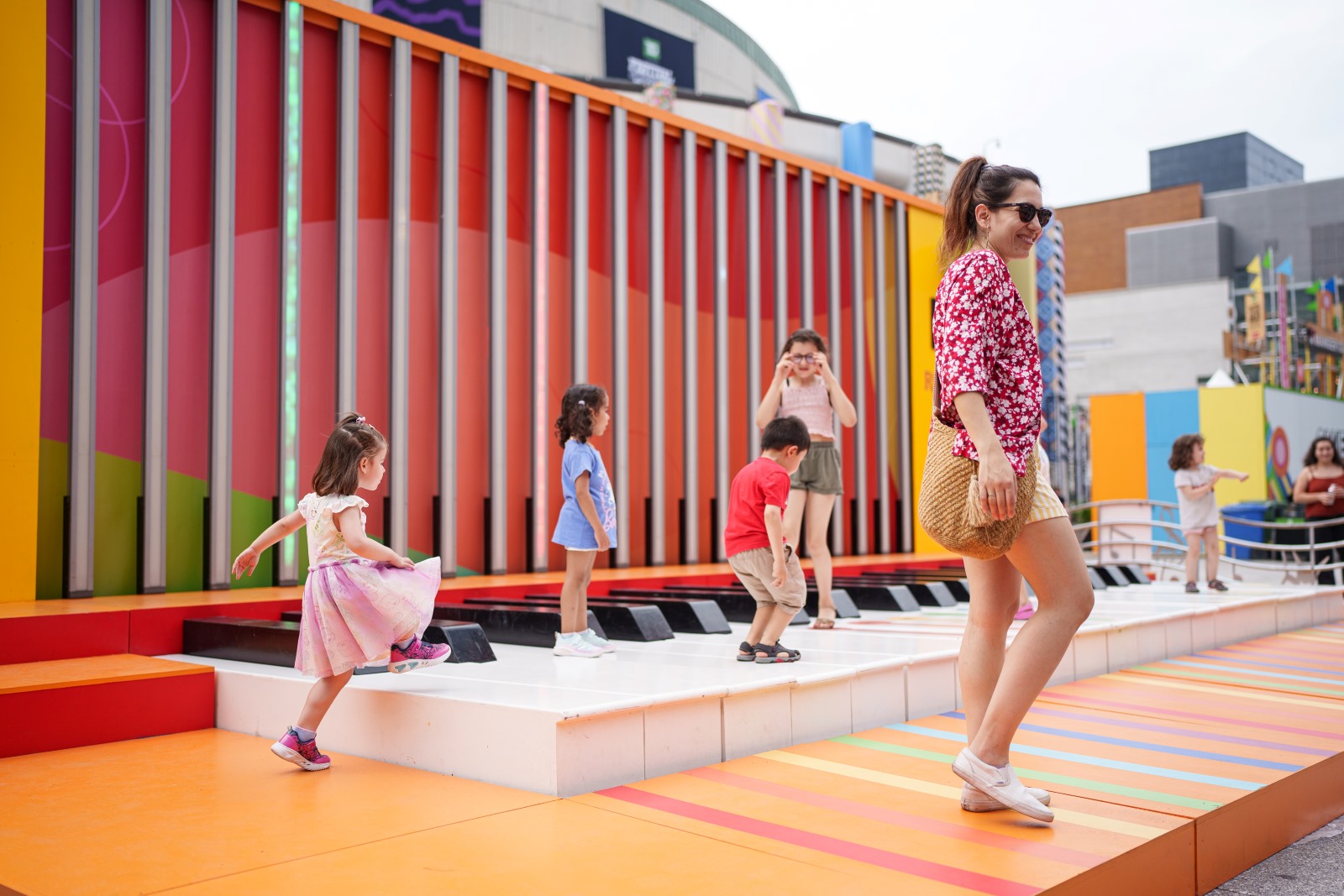 FIJM is a huge ten-day event with 27 scheduled concerts on each of the ten nights that the festival lasts, as well as impromptu performances around the festival site. More than half of the total of 350+ events have free admission. The largest venue is the open-air Scène TD, with a capacity of up to 60,000. The appreciative audience which gathers there or at smaller free-stages is drawn by the music, the relaxed all-day atmosphere. There is a whole area given over to a children’s musical playground, complete with a version of the walk-on piano from “Big” (pictured, bottom of page by Benoit Rousseau).