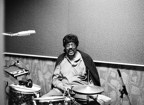 I can't imagine going to see Al Green, it would be so good. That generation of soul artists, my God – I did a session on Jamie Lidell's record with James Gadson (pictured left), the drummer who played on Bill Withers' “Aint No Sunshine” [she beatboxes the lazy rhythm], he's on “Respect” by Aretha Franklin, this big, tall long-haired old guy in his seventies, one of the most recorded musicians of all time... Anyway, I'm in the control room as he's laying down this beat, and I said to the engineer, “That sounds so fucking good, what is going on?” - just the sounds themselves were incredible. And the engineer said, “That's nothing, no mixing, just all mics open, that's just him playing!” So I snuck into the isolation room where the drums are happening and there's just this grinning man sitting there, and it's truly just the way his wrists are responding to the sticks which are responding to the skins. It was just a Pearl drumkit, the kind people would snottily be going, “Ewww, a black Pearl” [scrunches up face], you're in Metallica territory, but this soul guy was just establishing a whole sound of his own by his playing, by the spring and weighting of his musculature and all. I just felt on a cellular level that this drumming was better and different than what is otherwise out there, and this guy was just from another time. I'm not saying that I think Gonzo and Mocky are gonna go down in history like that, but I do think that the collective years that they and we have been working together are beginning to add up to something. I've been doing this for 10 years, Mocky for 15, Gonzales for 10, so collectively that's 40 years of playing together – so we were joking and saying, “Let's pretend we've all actually been playing together for 40 years,” compound our experience and see what record we can make, what sounds we'd be making if we were all in our fifties... We can only hope.